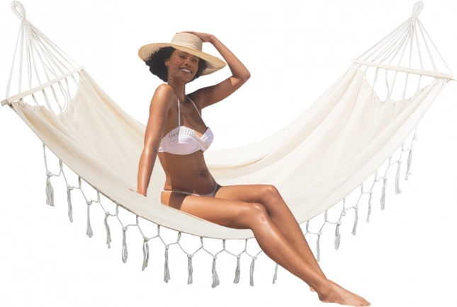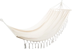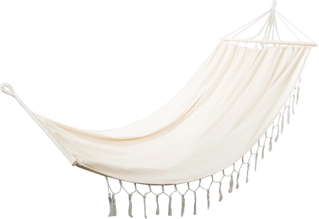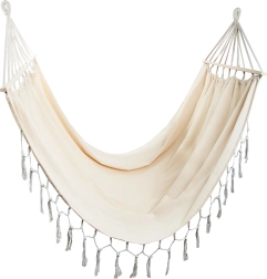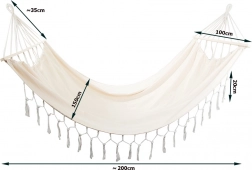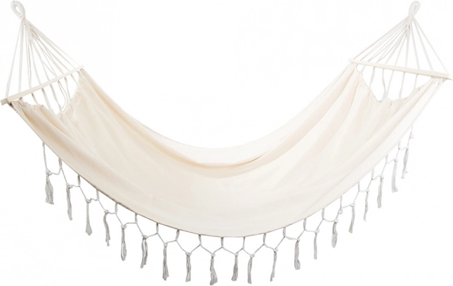 Ova boho viseća mreža idealna je za parove i pojedince koji vole udobnost i stil. Široka ležeća površina s drvenim razupornim letvama drži tkaninu lijepo raširenom, pa se možete udobno smjestiti i uživati u miru u vrtu, na balkonu ili na odmoru.
