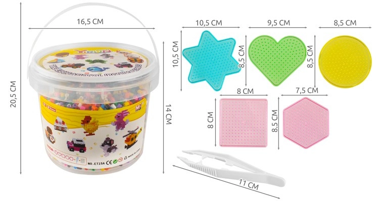 Ovaj bogati set pegla-perli idealan je za kućno stvaranje i za vrtiće. U pakiranju ćete naći 5000 perli u deset osnovnih boja, praktične šablone i dodatke uz koje djeca lako izrađuju raznolike slike, likove i životinjice. Dodavanjem više slojeva moguće je izraditi i 3D modele. Lagano i kompaktno pakiranje u zatvorivoj kanti omogućuje jednostavno prenošenje i spremanje.