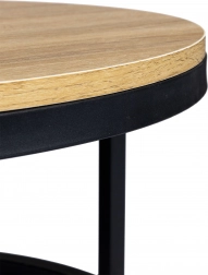 Okrugli oblik i kombinacija drva s crnim metalom naglašavaju atmosferu modernih i klasičnih interijera. Kompaktna dimenzija 60 cm štedi prostor, a istovremeno nudi praktičnu odlagalnu površinu.