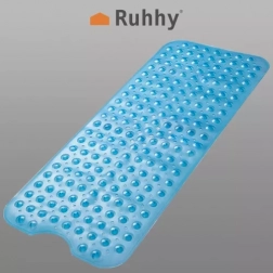 Velikoformatna protuklizna podloga RUHHY osigurava stabilan korak u kadi i tušu. Deseci vakuumskih čepova po cijeloj površini čvrsto prianjaju uz glatko dno i sprječavaju neželjeno pomicanje. Teksturirana površina pruža pouzdanu potporu u vlažnom okruženju i pomaže spriječiti padove.
