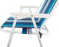 Široki nasloni za ruke i ugodna tkanina sjedala i naslona osiguravaju komfor tijekom cijelog dana na plaži ili u kampu.