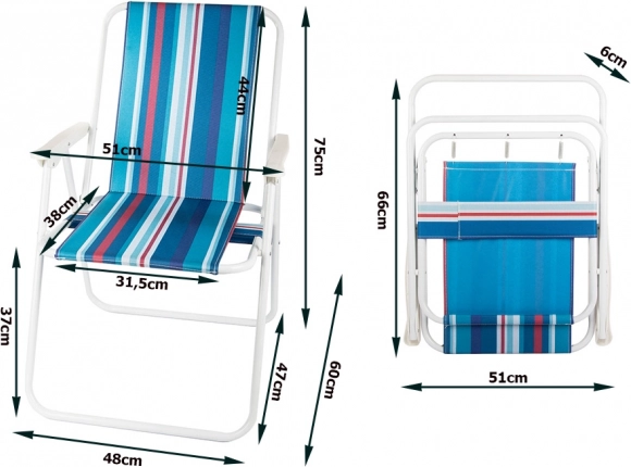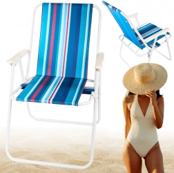 Ova sklopiva plažna stolica spaja malu težinu, lako prenošenje i provjerenu udobnost. Čelični okvir s praškastim premazom osigurava stabilnost, dok je izdržljiva tkanina sjedala i naslona ugodna na dodir i jednostavna za čišćenje. Udobni nasloni za ruke podupiru opuštanje i pri duljem sjedenju.