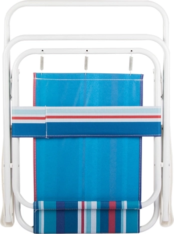 Stolica se sklapa ravno, pa zauzima minimalno mjesta u prtljažniku automobila, kamp-prikolici ili plažnoj torbi. Sastavljanje je pitanje sekundi – dovoljno ju je otvoriti i možete se odmarati.