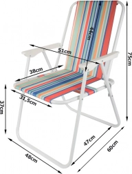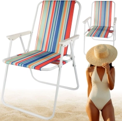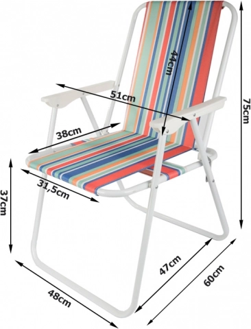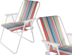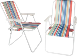 Stolica se rasklapa bez alata – dovoljno ju je otvoriti i udobno sjedište s naslonima za ruke je spremno. Svestrani prugasti izgled unosi ljetni ugođaj vašem kampiranju, ribolovu, pikniku i odmoru na balkonu.