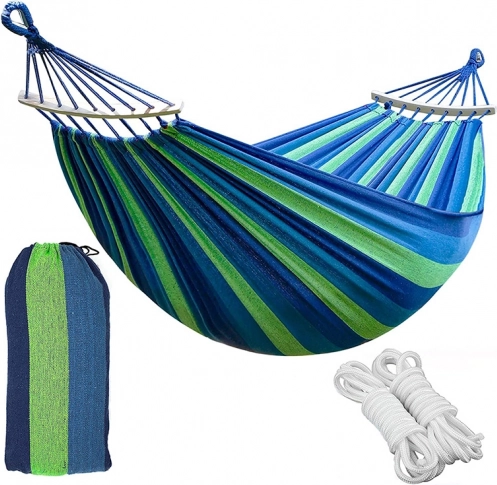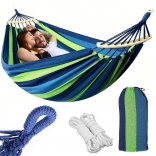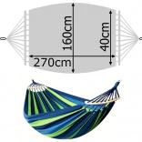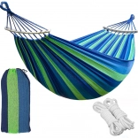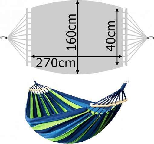 Ova viseća mreža izrađena je s naglaskom na maksimalnu udobnost i trajnost. Napravljena je od izdržljivog pamuka s primjesom poliestera, što osigurava stabilnu i prozračnu konstrukciju. Idealan izbor za čitanje, opuštanje ili lagano njihanje u prirodi.
