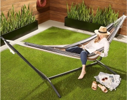 Viseću mrežu pričvrstit ćete u trenu – dovoljno ju je učvrstiti između stabala ili na čvrste stupove. U pakiranju ćete naći 2 učvršćujuća užeta i praktičnu futrolu u koju mrežu lako smotate i ponesete sa sobom na piknik ili u kamp.