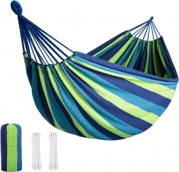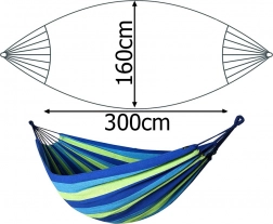 Dvosjedna viseća mreža savršen je dodatak za svakoga tko želi uživati u trenucima tišine na svježem zraku. Izrađena je od izdržljivog pamuka s poliesterom, što osigurava dugotrajnost i udobnu upotrebu. Zahvaljujući priloženim užadima lako se pričvršćuje između stabala ili stupova i možete odmah početi uživati.