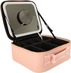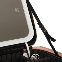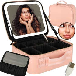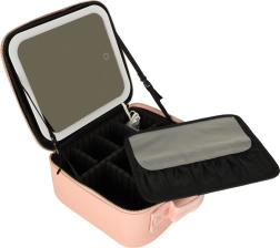 Ružičasti kozmetički kofer idealan je za putovanja i svakodnevnu upotrebu. Zahvaljujući LED zrcalu s dodirnim upravljanjem i 10× povećavajućem zrcalu precizno ćete urediti make-up i u lošijim svjetlosnim uvjetima. Unutarnji podesivi pretinci i džep za kistove ili ruževe održavaju sve savršeno organiziranim.