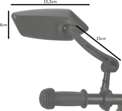 Zrcala imaju duljinu ruke 15 cm, što omogućuje širok pogled, a njihove dimenzije su 15,5 cm x 6 cm. Visokokvalitetna plastična izrada osigurava dug vijek trajanja.