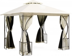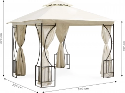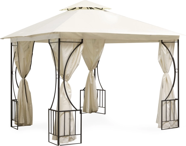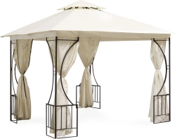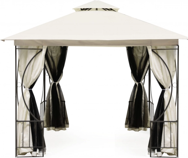 Ovaj prostrani vrtni paviljon u bež boji spaja stilski izgled s praktičnom zaštitom od sunca, slabije kiše i insekata. Čelik s praškastim premazom osigurava dugotrajnost i otpornost na ogrebotine, a dvostruki krov podupire cirkulaciju zraka i učinkovito odvodi vodu.