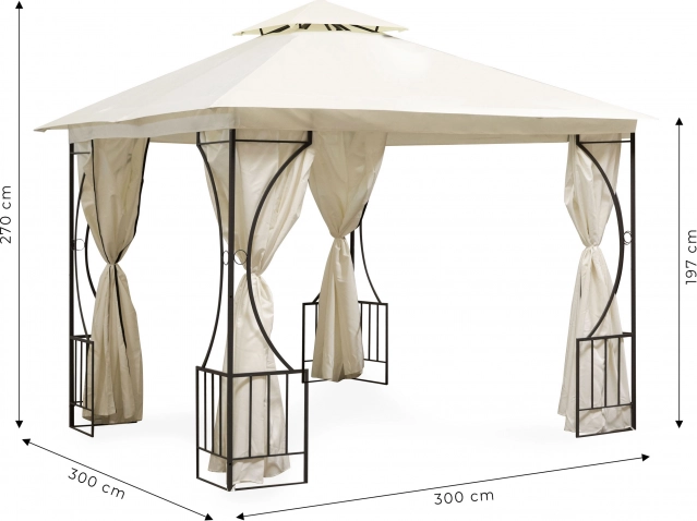 Okvir od čelika s praškastim premazom osigurava stabilnost i dug vijek trajanja. Dekorativni detalji daju paviljonu elegantan izgled u svakom vrtu.