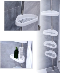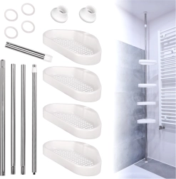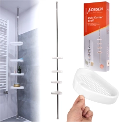 Ova teleskopska kutna polica pametno iskorištava svaki centimetar prostora u tušu. Zahvaljujući opružnom učvršćenju između poda i stropa ugradit ćete je u trenu bez bušenja, vijaka i oštećenja pločica. Četiri prostrane plastične košarice s drenažnim otvorima sprječavaju zadržavanje vode te se lako održavaju čistima.