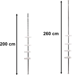 Teleskopska konstrukcija prilagođava se različitim visinama kupaonica i tuš kabina. Stabilna metalna šipka s plastičnim elementima za dug vijek trajanja.