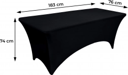 Navlaka MULTIGARDEN dizajnirana je za standardne banketne stolove 180 cm (6 ft) i trenutačno vašem prostoru daje profesionalan i elegantan izgled. Rastezljiv materijal od poliestera i spandexa čvrsto zateže rubove i noge stola, tako da sve ostaje na svom mjestu bez klizanja i nabora.