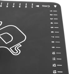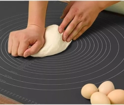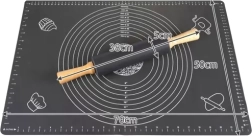 Set RUHHY kombinira kvalitetnu silikonsku podlogu s preciznim kružnim i linijskim skalama te valjak s površinom od silikona i drvenim ručkama. Podloga čvrsto prianja na kuhinjsku radnu ploču, ne klizi i zahvaljujući neprianjajućoj površini tijesto se ne lijepi – bez nepotrebnog posipanja brašnom. Velikodušna dimenzija 70 × 50 cm pruža dovoljno mjesta za pizzu, kekse, medenjake i dizana tijesta.