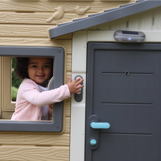 Nakon pritiska na gumb začuje se jasan “ding-dong” koji potiče interaktivnu igru i doček gostiju kod dječje kućice.