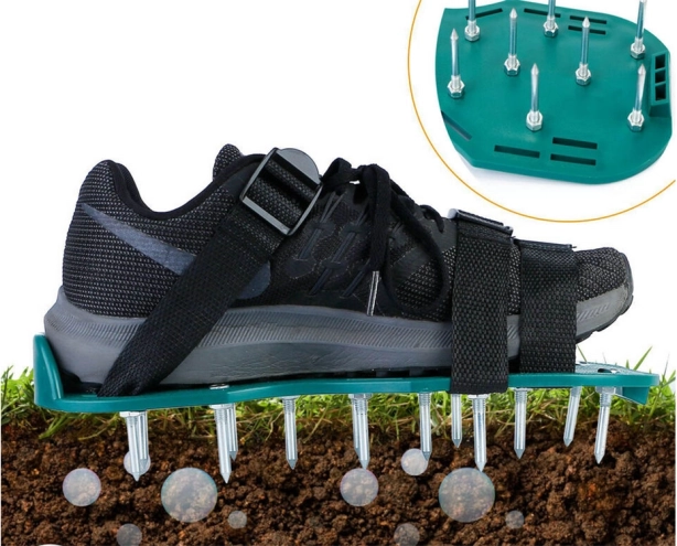 Ove cipele za provjetravanje stvaraju mnogo malih rupa u tlu, što poboljšava prozračivanje tla i potiče rast korijenskog sustava. Tlo je manje zbijeno, što omogućuje brže prodiranje vode i hranjivih tvari biljkama.