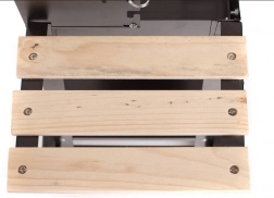 Roštilj je dizajniran da izdrži vremenske uvjete, što omogućuje njegovu upotrebu i u zahtjevnim uvjetima. Za dodatnu zaštitu i trajnost preporučujemo očuvanje njegovih drvenih dijelova specijalnim sredstvima za konzerviranje.