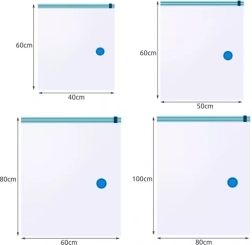 Vrećice su izrađene od izdržljive kombinacije PA + HDPE sa silikonskim brtvama, pa dobro podnose višekratnu upotrebu. Prozirno izvedenje s plavim zatvaračem olakšava brzu identifikaciju sadržaja i pregledno odlaganje.