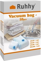 Set vakuumskih vrećica pomaže vam učinkovito organizirati garderobu, posteljinu i dječji tekstil. Zahvaljujući zračno-nepropusnom zatvaranju i ventilu za priključak na usisavač lako komprimirate glomazne komade i oslobađate dragocjeni prostor u ormarima, ispod kreveta ili u spremnim kutijama.