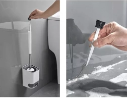Elegantan kupaonski set kombinira silikonsku četku s dugom drškom od nehrđajućeg čelika i kompaktni držač s ventilacijom za brzo sušenje. Zahvaljujući elastičnim TPR vlaknima, četka doseže u sve kutove, ispod ruba i dublje u školjku, bez ogrebotina na površini. Držač se može postaviti na pod ili zalijepiti na zid bez bušenja.