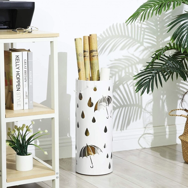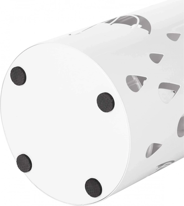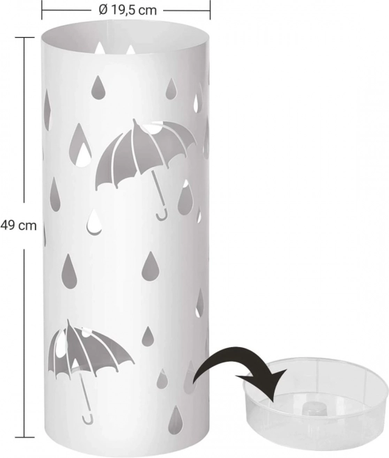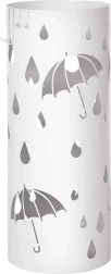 Elegantni bijeli stalak za kišobrane idealan je dodatak vašem domu. Moderan dizajn i otvorena metalna konstrukcija daju stilski izgled i privlače pažnju svakog posjetitelja. Bijela boja i dekorativni izrezi kišobrana i kišnih kapi upotpunjuju izgled svakog ulaza ili hodnika.