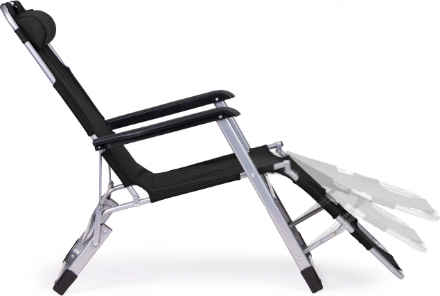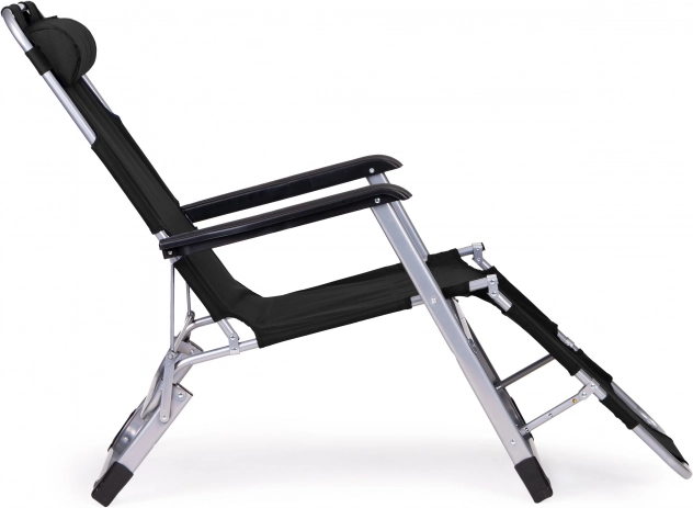 Ergonomiju podupire mekani podglavljač za vrat i glavu, oslonac za noge u 3 položaja te praktični nasloni za ruke. Protuklizne nožice štite podlogu od ogrebotina i povećavaju stabilnost pri odmoru i sunčanju.