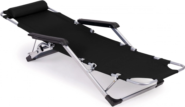 Metalni okvir, protuklizni završeci i oslonac za noge u 3 položaja za siguran komfor. Ležaljku brzo sklopite i ponesete.