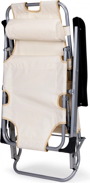 Ležaljka se može preklopiti u ležaljku, a zahvaljujući pametnoj konstrukciji dovoljan je trenutak da postane udobno mjesto za ležanje, idealno za odmor na otvorenom.
