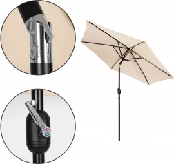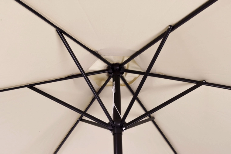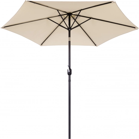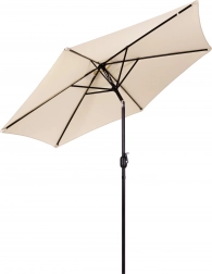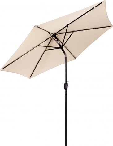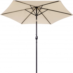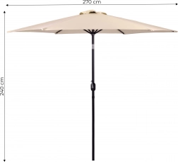 Kvalitetna navlaka od poliestera 160 g/m² odolijeva suncu i sitnoj kiši, čvrst čelični okvir (ø 38 mm) sa šest rebara drži oblik i daje stabilnost. Minimalistički dizajn i bež izvedba prikladni su za terasu, vrt, balkon i kampiranje.