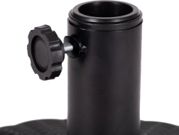 Držač suncobrana od praškasto premazanog metala opremljen je vijcem za zatezanje i s dva prstena za sigurno učvršćivanje.