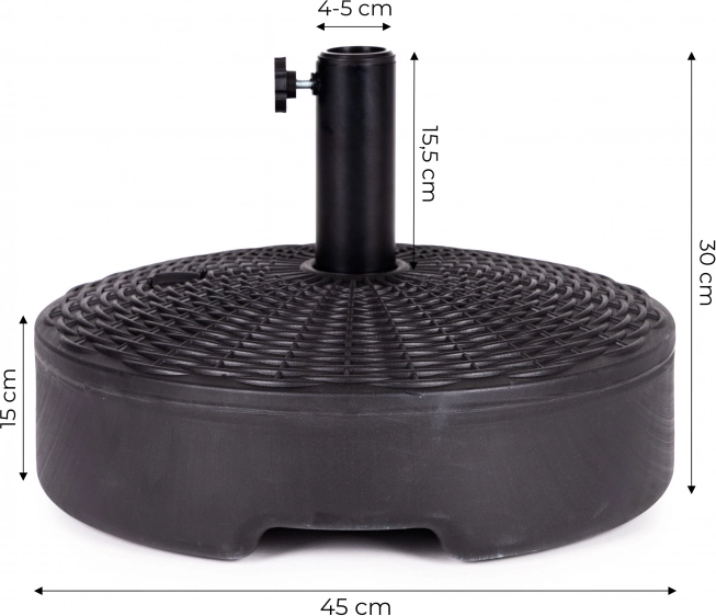 Stalak za vrtni suncobran MultiGarden dizajniran je da pruži stabilnu potporu za vaš suncobran u vrtu ili na terasi. S kapacitetom od 22 litra i mogućnošću punjenja vodom, održava suncobran čvrsto na mjestu. Njegov promjer od 45 cm i visina od 15 cm osiguravaju da stalak ne zauzima previše prostora, ali ipak nudi potrebnu stabilnost.