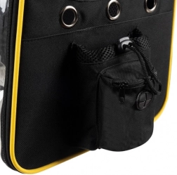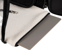 Izvadiva mekana podloga s ojačanim dnom i unutarnja sigurnosna karabinka osiguravaju udobnost i zaštitu životinje tijekom putovanja.