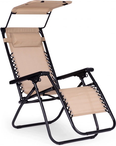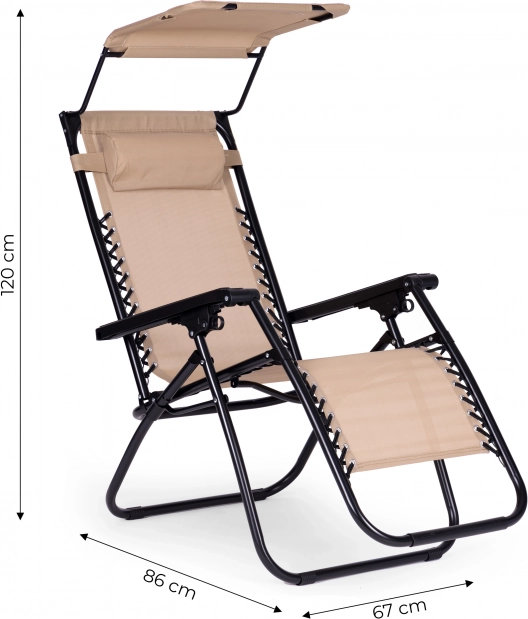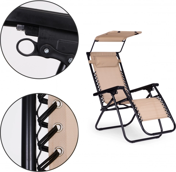 Uživajte u relaksaciji u vrtu, na terasi ili na plaži s ovom udobnom ležaljkom u elegantnoj bež boji. Nudi glatko podešavanje nagiba sve do položaja bez gravitacije, podesivo sunčano sjenilo, mekani jastuk za glavu i sklopivu konstrukciju za lako prenošenje. Izdržljiv čelični okvir s protukliznim završecima i vodootpornom tkaninom jamči udobnost i dug vijek trajanja. Maksimalna nosivost 120 kg.