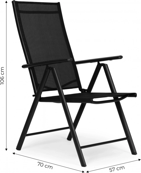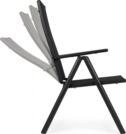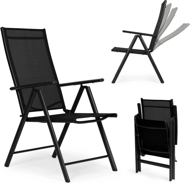 Sklopive stolice s sedam položaja podešavanja naslona omogućuju vam ugodnu relaksaciju u vrtu, na balkonu ili terasi. Čelični okvir jamči stabilnost i dugotrajnu upotrebu, a zahvaljujući korištenim kvalitetnim materijalima ne zahtijeva nikakvo održavanje.
