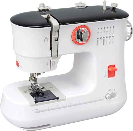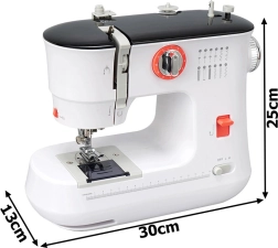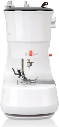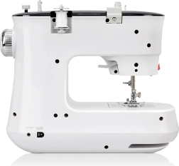 Ovaj bijeli šivaći stroj je malen i lako prenosiv, idealan za brze šivaće preinake i male kućne projekte.