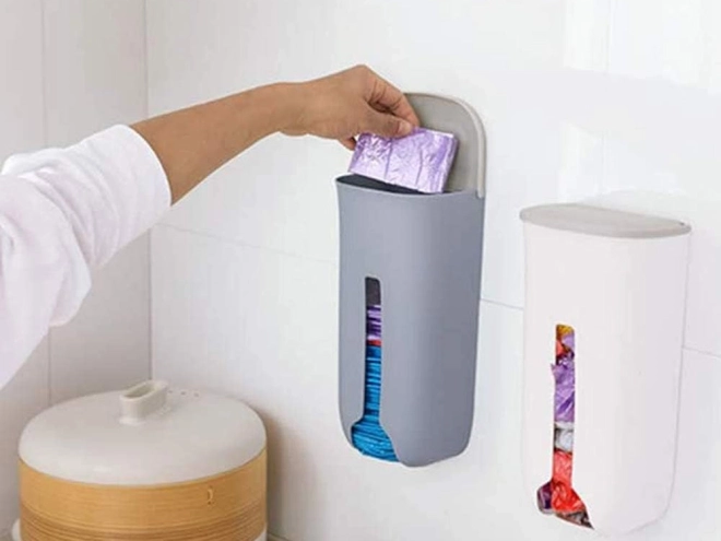 Pametni organizator za kuhinjske vrecice pomaze reciklirati i pregledno pohraniti sve plasticne vrecice i vrecice. Zahvaljujuci tankom obliku i vertikalnom izdvajanju, vrecice vadite jednu po jednu, bez nepotrebnog petljanja. Minimalisticki izgled u sivoj boji pristaje modernim i klasicnim interijerima.