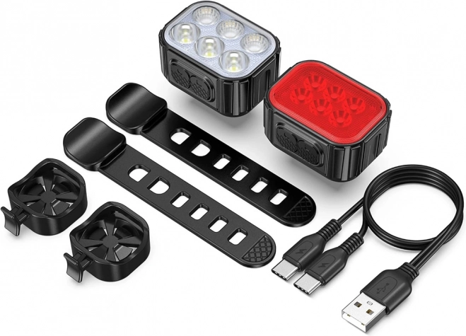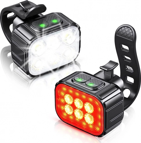 Ovaj set LED svjetala za bicikl dizajniran je za maksimalnu sigurnost i udobnost tijekom noćnih vožnji. Uključuje prednje i stražnje svjetlo koja osiguravaju visoku vidljivost te su zaštićena od kiše i drugih vremenskih utjecaja zahvaljujući izdržljivoj izradi.