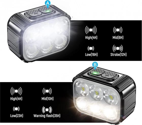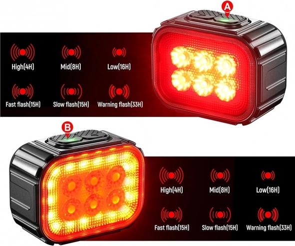 Set podržava USB punjenje s bilo kojeg uređaja s USB priključkom, što je vrlo praktično. Prednje svjetlo ima šest načina rada, kao i stražnje svjetlo, što omogućuje prilagodbu prema potrebi.