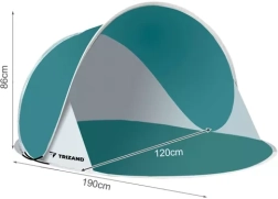 Uživajte u udobnosti i hladu uz vodu s plažnim šatorom TRIZAND. Poluotvorena POP-UP konstrukcija se nakon vađenja iz torbe rasporedi gotovo trenutno, a stabilnost osiguravaju elastične štapove od staklenih vlakana. Šator pouzdano štiti od vjetra i sunca, a tkanina s UV filtrom UPF 30+ smanjuje utjecaj štetnog zračenja. Vodeni stupac 300 mm pruža zaštitu od slabe kiše ili rosulje.