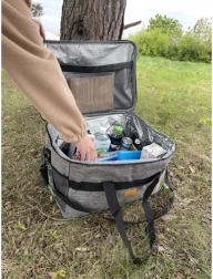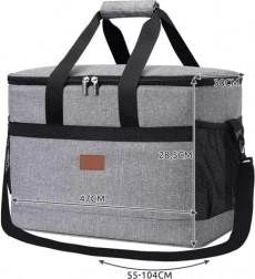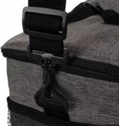 Za maksimalnu udobnost nošenja torba ima čvrste ručke sa spojnicom na čičak i odvojivi podesivi remen (55–104 cm). Dvosmjerni patentni zatvarač olakšava pristup, bočni mrežasti džepovi i prednji džep primaju sitnice. Dva priložena rashladna akumulatora dovoljno je zamrznuti i oni će produžiti vrijeme hlađenja unutar torbe.