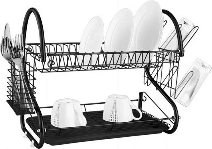 Praktična dvoslojna ocjedna za posuđe izrađena od kromiranih žica i cijevi, savršeno će poslužiti u svakoj kuhinji. Ova ocjedna može primiti do 15 tanjura na gornjoj razini, dok je na donjoj razini prostor za čaše i šalice. Izuzetno je prostrana i dodatno opremljena nekoliko odvojivih elemenata koji povećavaju njezinu funkcionalnost.