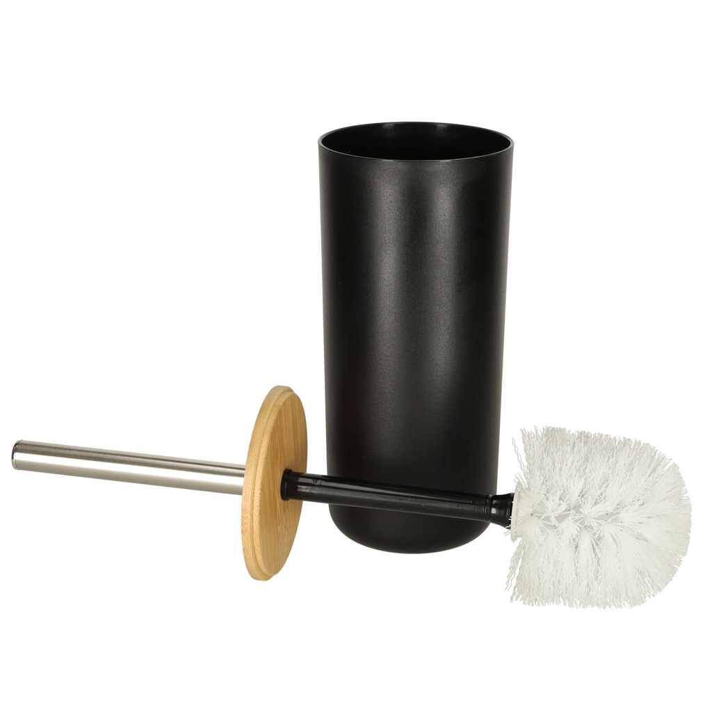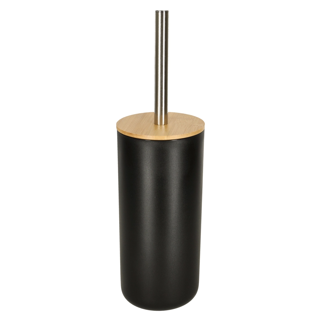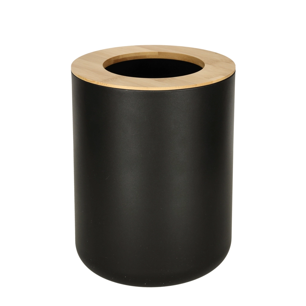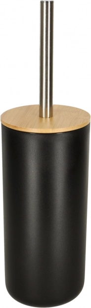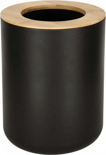 Elegantni 6-dijelni set kupaonskih dodataka u crnoj boji s drvenim akcentima ujednačit će izgled vaše kupaonice i olakšati organizaciju. Sadrži koš, WC četku s kućištem, dozator sapuna, čašu, čašu za četkice i posudicu za sapun. Kombinacija izdržljive plastike i drva osigurava dug vijek trajanja, moderan dizajn i jednostavno održavanje.
