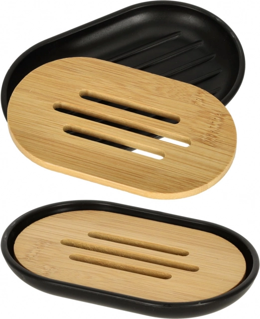 Ovaj komplet u minimalističkoj crnoj izvedbi s prirodnim drvenim detaljima pristaje modernim i klasičnim interijerima. Zahvaljujući usklađenom dizajnu stvorit ćete harmoničnu i stilsku cjelinu u svakoj kupaonici.