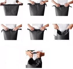 Sklopite rub najmanje tri puta i pričvrstite kopču – jednostavno i učinkovito brtvljenje protiv vode i slučajnog otvaranja.