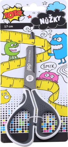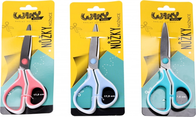 Praktične šarene škare duljine 17,5 cm s ergonomski oblikovanom mekanom ručkom i gumenim protukliznim prihvatom. Pogodne za školu, kućanstvo i ured. Dostupne u 3 boje.