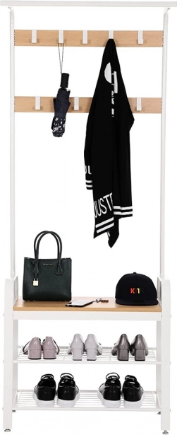 Vješalica nudi 9 kukica za vješanje odjeće i dodataka te dvije police za cipele za organizaciju predsoblja.