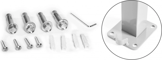 Montaža tende jednostavna je i brza, što omogućuje lako postavljanje bez potrebe za stručnim vještinama ili alatom. Dva stupa mogu se jednostavno montirati i na zid i u pod za veću stabilnost i sigurnost zahvaljujući priloženom montažnom priboru.