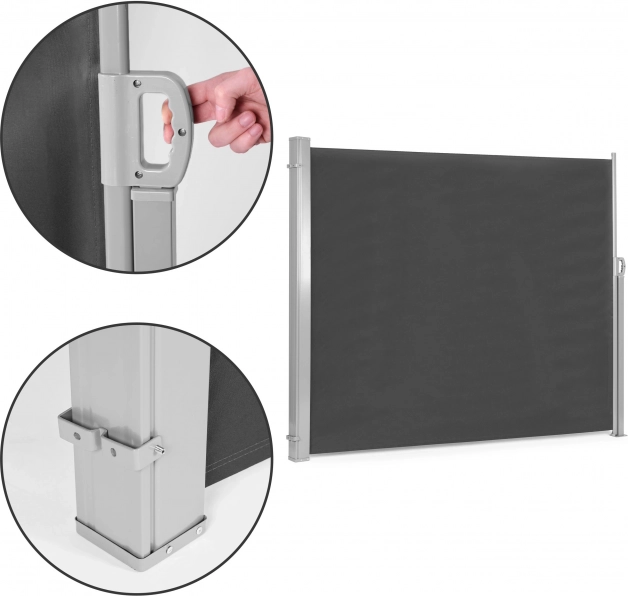 Montaža tende jednostavna je i brza, što omogućuje lako postavljanje bez potrebe za posebnim vještinama ili alatom. Dva stupa mogu se jednostavno montirati na zid i na pod radi veće stabilnosti i sigurnosti zahvaljujući priloženom montažnom priboru.