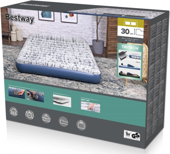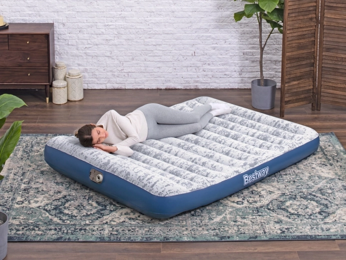 Tražite udobno i praktično rješenje za goste ili kao privremeni ležaj? Napuhljivi krevet BESTWAY Queen 203 × 152 × 30 cm od materijala Tritech zadržava oblik i visinu, stabilan je i ugodan na dodir zahvaljujući flokiranoj površini. Integrirana električna pumpa 220–240 V osigurava napuhavanje za 2–3 minute, tako da je ležaj spreman u trenu.